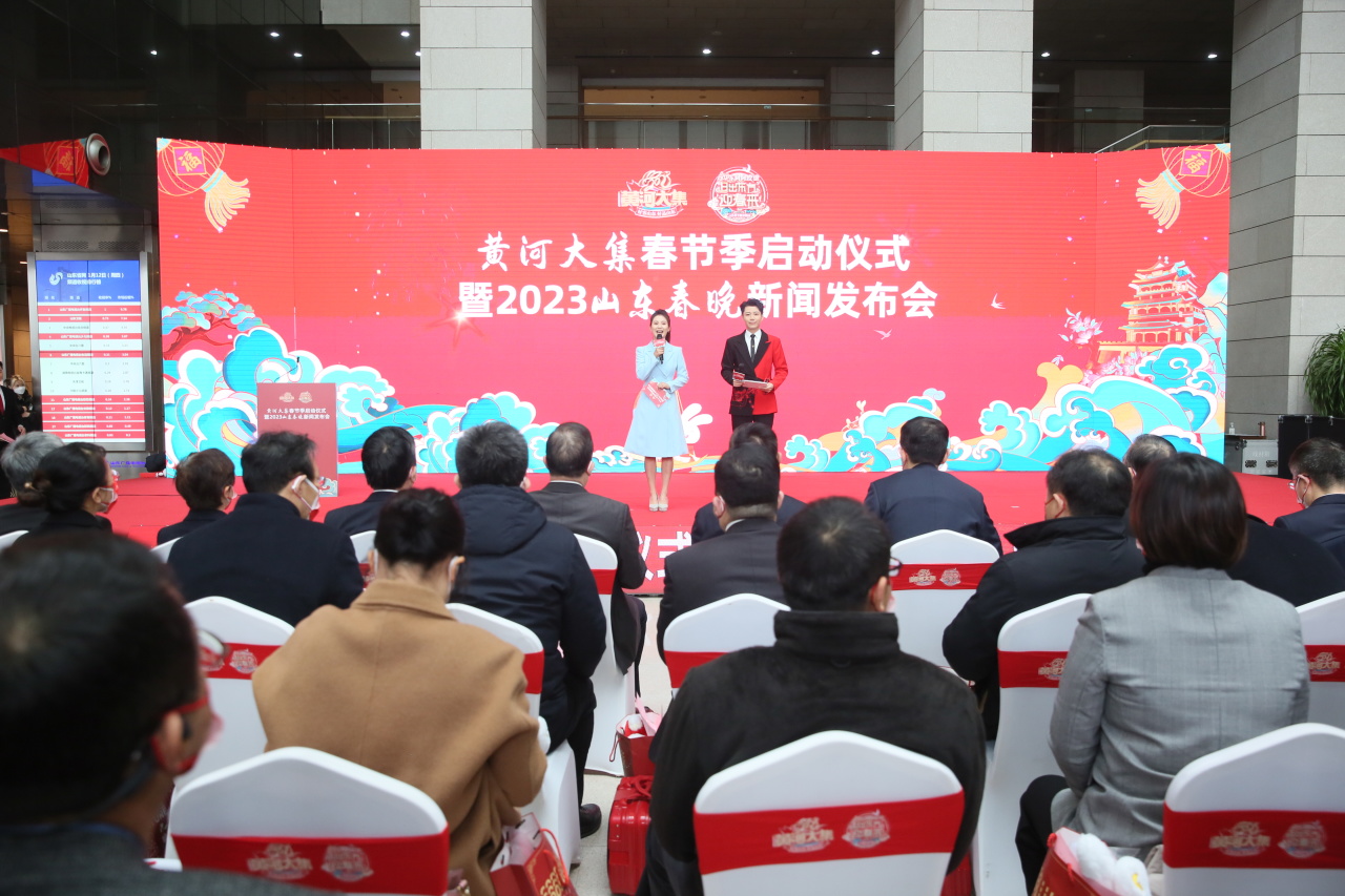 發布會上,程守田同志在致辭中表示,山東作為黃河流域九?。▍^)唯一的東部沿海大省,文化旅游資源富集,山東在傳承弘揚黃河文化上優勢突出、責任重大。省委宣傳部會同13個部門單位,共同策劃舉辦“黃河大集”,通過“線下大集+線上帶貨+宣傳推介”的方式,打造融黃河九省(區)文化、旅游、好品為一體,共同講好黃河故事的文旅消費品牌,是傳承黃河優秀文化、助力鄉村全面振興、滿足群眾美好生活需要的重要舉措。連日來,各地各部門以“黃河大集”為載體,結合文化、科技、衛生、法律“四下鄉”組織實施各類惠民利民項目,展示各具特色的民俗活動,為農民群眾辦好事、讓文化服務到基層、促城鄉好品進市場、帶城里人趕大集迅速火爆全網,“黃河大集”傳播力和影響力迅速提升,為全省人民營造出歡樂、祥和、喜慶的中國年味。2023年山東春晚舞美設計精美、演員陣容強大,節目質量一流,共同傳遞“家的味道”、致敬平凡英雄、展現“山東驕傲”。相信“黃河大集”春節季和2023山東春晚,一定能為山東人民乃至全國人民獻上一份春節文化大餐。