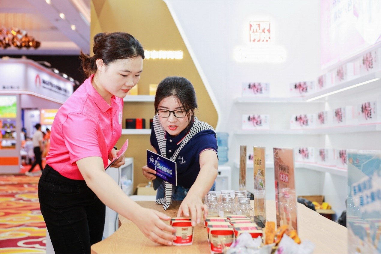 東阿阿膠展臺前,主播對阿膠豐富的產品吃法產生了濃厚的興趣,特別是對阿膠奶茶,阿膠冰激凌、阿膠酸奶杯等諸多新吃法贊不絕口。同時,東阿阿膠相關負責人也對前來展位的眾多行業專家、醫藥連鎖領導者全方位、立體化地介紹了東阿阿膠的跨界產品及未來的產品戰略規劃。