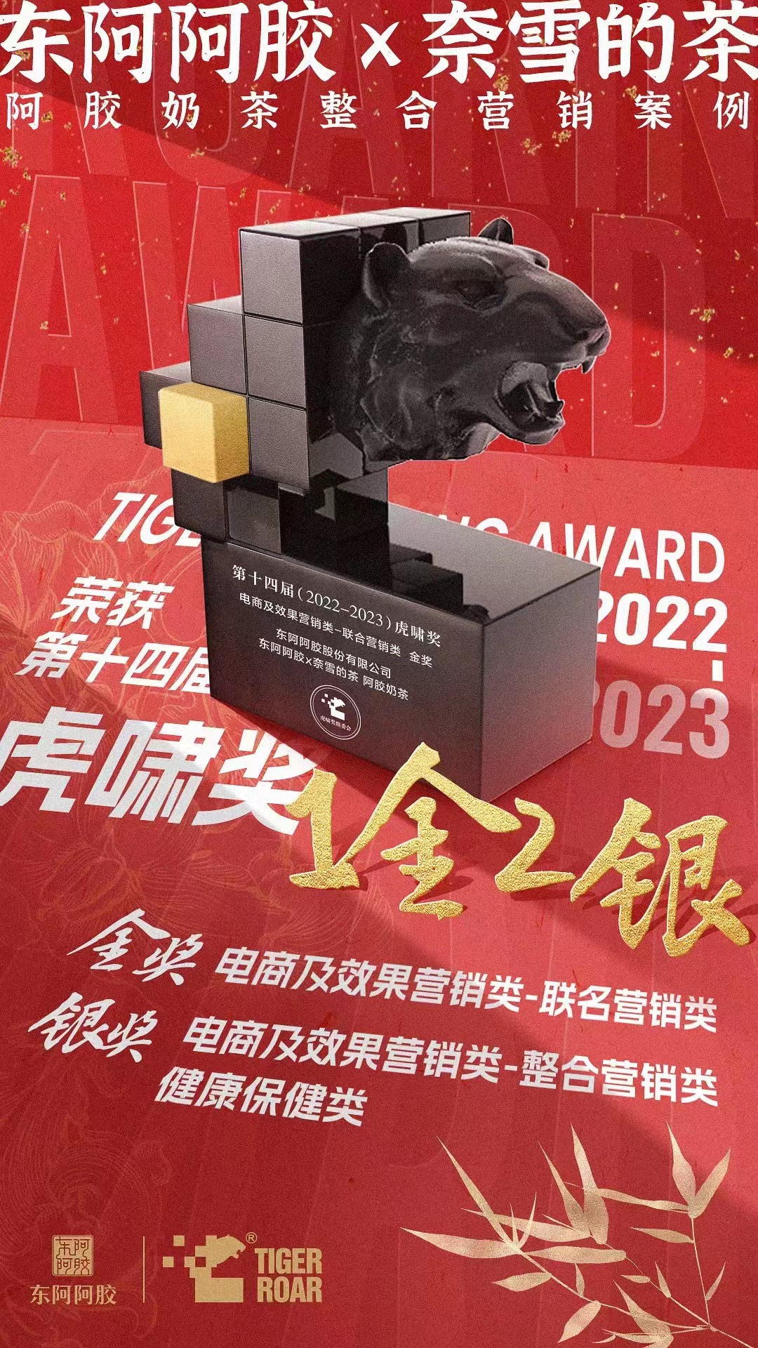 近日,作為中國品牌營銷數字化領域的頭部大獎——第十四屆虎嘯獎正式揭曉,東阿阿膠×奈雪的茶阿膠奶茶整合營銷案例,從四千余件營銷案例中脫穎而出,一舉斬獲【電商及效果營銷類-聯名營銷類】金獎!同時喜獲【電商及效果營銷類-整合營銷類】銀獎和【健康保健類】銀獎。