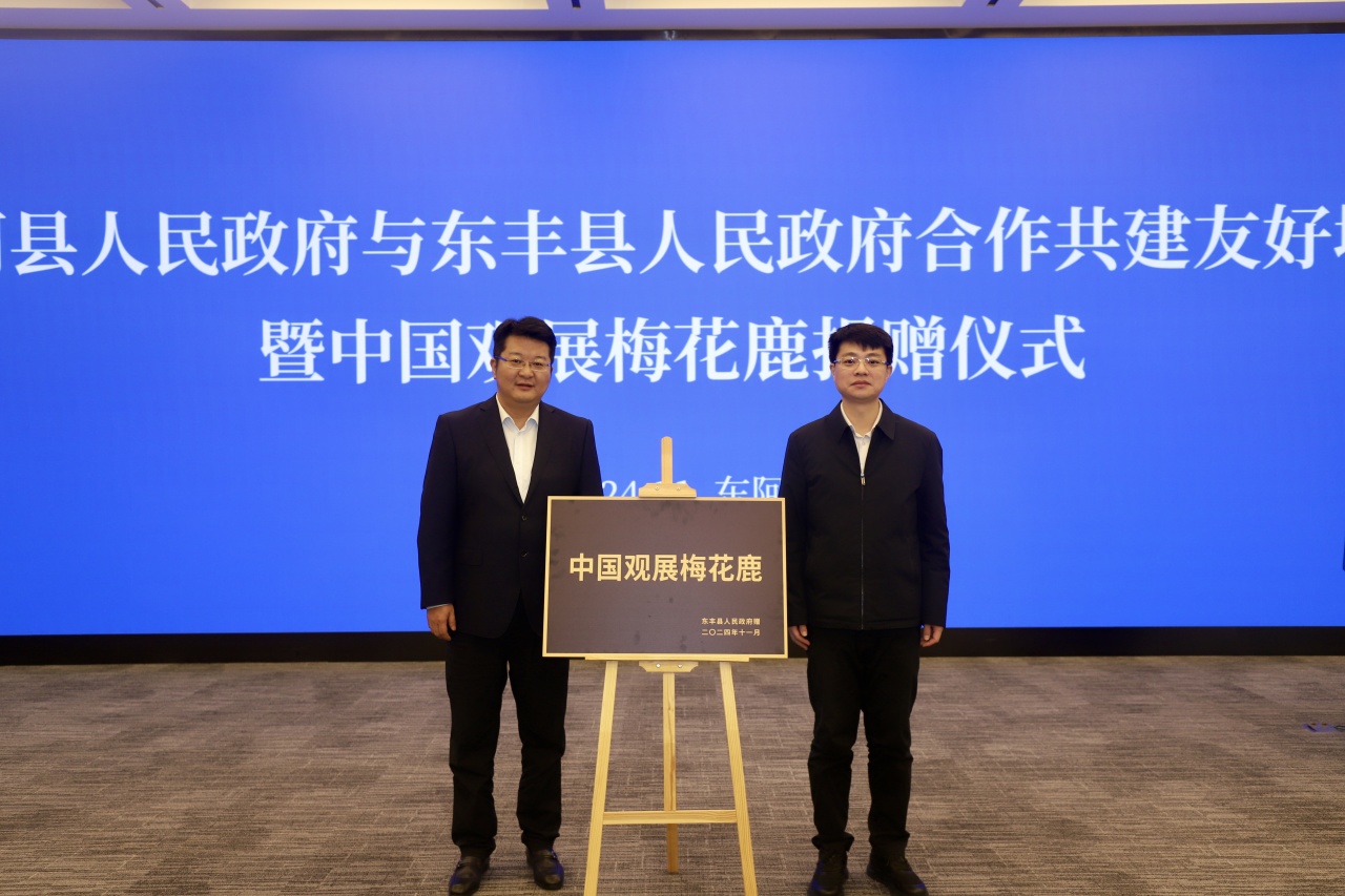 會上,東豐縣向東阿阿膠捐贈了中國觀展梅花鹿。