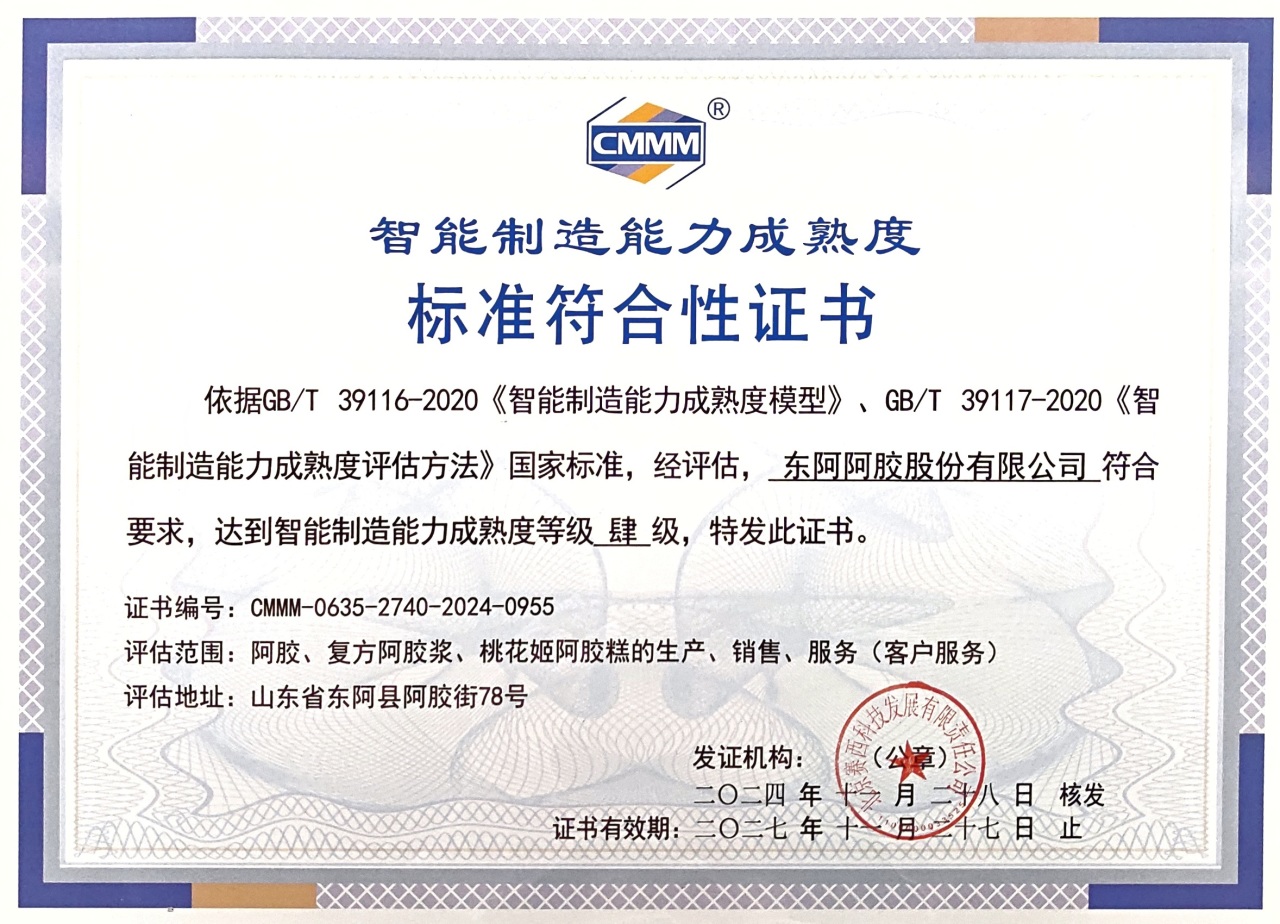 日前,東阿阿膠股份有限公司(以下簡稱“東阿阿膠”)通過了由工業和信息化部組織的基于智能制造能力成熟度(以下簡稱“CMMM評估”)標準符合性評估的現場評估,獲智能制造能力成熟度四級認證。
