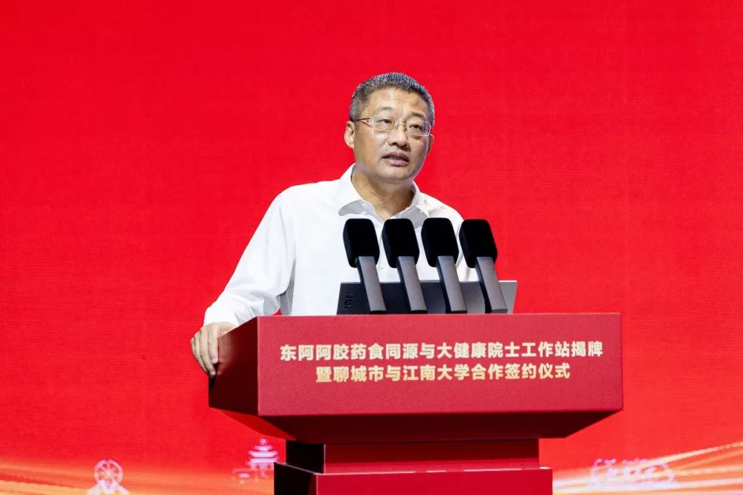 白曉松在致辭中表示,院士工作站是激活企業(yè)創(chuàng)新動(dòng)能的強(qiáng)力引擎,更是促進(jìn)“產(chǎn)學(xué)研”協(xié)同發(fā)展關(guān)鍵樞紐。東阿阿膠藥食同源與大健康院士工作站揭牌,聊城市與江南大學(xué)簽訂合作協(xié)議,這是聊城大健康產(chǎn)業(yè)的一件喜事,也是阿膠產(chǎn)業(yè)的大事好事,將有力推動(dòng)阿膠食品以及其他“藥食同源”功能食品的研發(fā)上市,促進(jìn)山東大健康產(chǎn)業(yè)創(chuàng)新發(fā)展。希望東阿阿膠依托院士工作站,與江南大學(xué)深化“產(chǎn)學(xué)研”合作,加強(qiáng)科技人才培養(yǎng),推動(dòng)項(xiàng)目互聯(lián)、人才互通、黨建共建,加快實(shí)現(xiàn)健康消費(fèi)品戰(zhàn)略目標(biāo)。