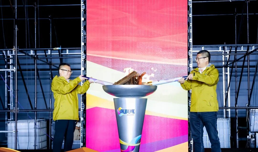 今年7月,大賽主辦方在距離阿拉善大漠千里之外的山東省東阿縣采集了象征中醫藥傳承的火種。現在,這團承載著中醫藥文化千年匠心傳承的“淬煉之火”,來到阿拉善大漠,照亮了參賽醫藥人同心共“燃”的奮進征程。儀式現場,火炬手將源火傳遞給郭亞洲和東阿阿膠副總裁劉廣源,兩人共同點燃火種盆。五組嘉賓分批來到火種盆前,點燃手中火炬,回到各自區域。在倒數3個數口令后,大家共同點燃所在舞臺的啟動火盆,隨著五方火盆熊熊燃燒,第八屆醫聯賽的壯闊征程正式燃啟。